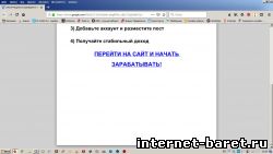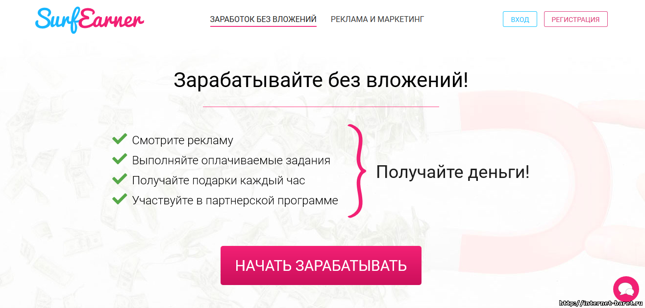 Заработок на полном автомате без всякой всплывающей рекламы и прочего. Регистрируйтесь на сайте.Регистрация стандартная. В личном кабинете скачиваете там программу,устанавливаете её,запускаете её введя свои данные и всё больше делать ни чего не требуется.