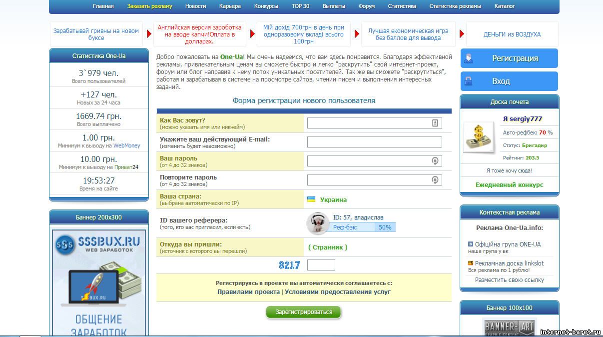 Если ты хочешь заработать не выполняя для этого больших усилий,а так же пассивно,тебе нужно зарегистрироваться на новом перспективном почтовике One-ua. Присутствует 2 способа вывода финансов на кошелек Wtb Money и на карточку Минимальный вывод средств от 1 грн. Если тебя заинтересовала информация ,переходи по ссылке и регистрируйся: