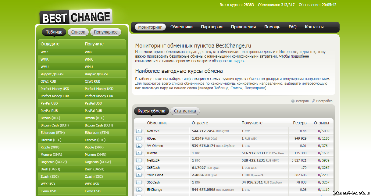 Представляю вашему вниманию самый лучший обменник валюты онлайн!! Здесь вы можете не только совершать переводы с любого электронного кошелька на любой другой, но так же зарабатывать благодаря уникальной партнерской системы и курсу валют. Заходите и убедитесь в этом сами.